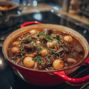 Each ingredient in this recipe has a story to tell. The beef chuck becomes tender and flavorful as it mingles with the wine and spices. The carrots and mushrooms add a delightful earthiness that reminds me of the gardens we used to tend in my hometown. And the red wine? It’s like adding a splash of joy to the pot! Don’t worry about using something fancy – a humble burgundy or pinot noir will do just fine.